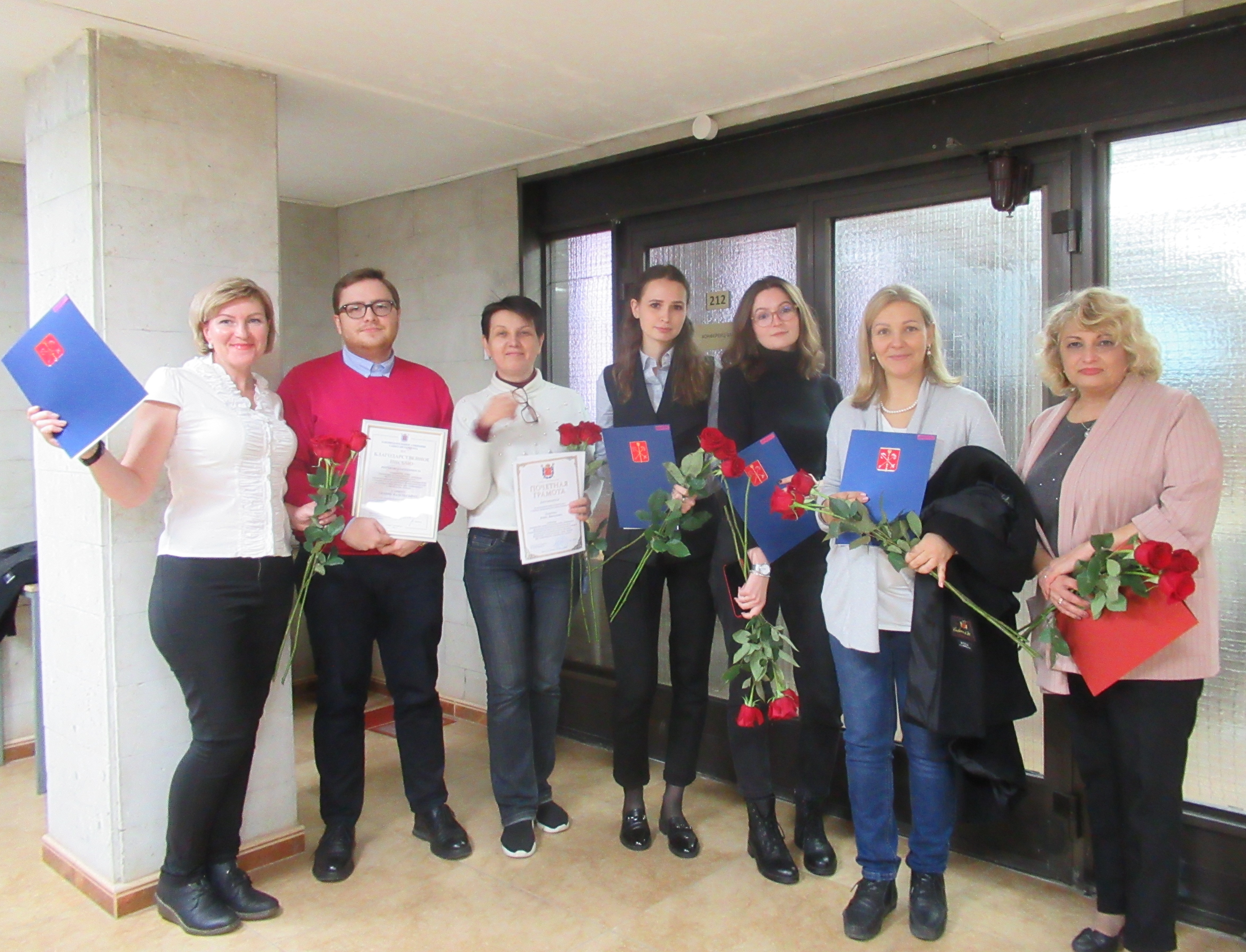 Благодарность Комитета по здравоохранению за многолетний добросовестный труд в системе здравоохранения Санкт-Петербурга объявлена Марковой Алле Николаевне, врачу-терапевту, заведующей Дневным отделением; Кравцовой Людмиле Викторовне, медицинской сестре Дневного стационара; Боевой Екатерине Валериевне, врачу-инфекционисту, заведующей Отделением хронической вирусной инфекции; Шаровой Алене Александровне, младшему научному сотруднику Группы эпидемиологического мониторинга и прогнозирования; Даниловой Екатерине Михайловне, врачу-инфекционисту, заведующей Диспансерно-поликлиническим отделением.
