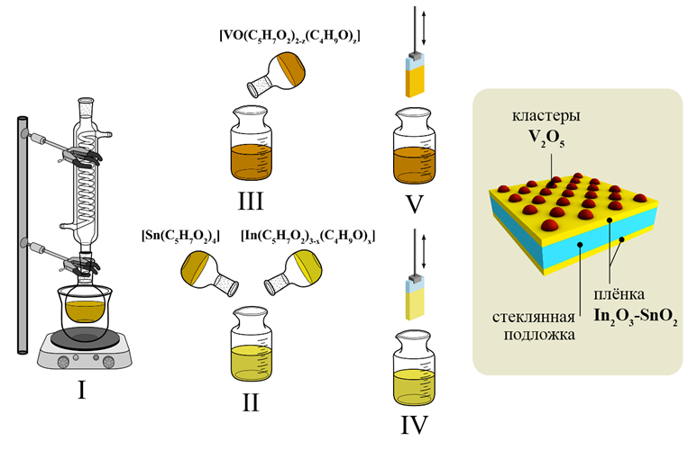 «Целью работы было получить двухслойную планарную структуру, состоящую из слоя прозрачного электрода (оксид индия, допированный оловом) с нанесенным поверх него слоем оксида ванадия. Такие покрытия являются перспективными для применения в «умных» окнах. Оксид ванадия в качестве активного электрохромного материала способен менять окраску от практически бесцветной до зеленой и синей, регулируя пропускание инфракрасного и видимого излучения.