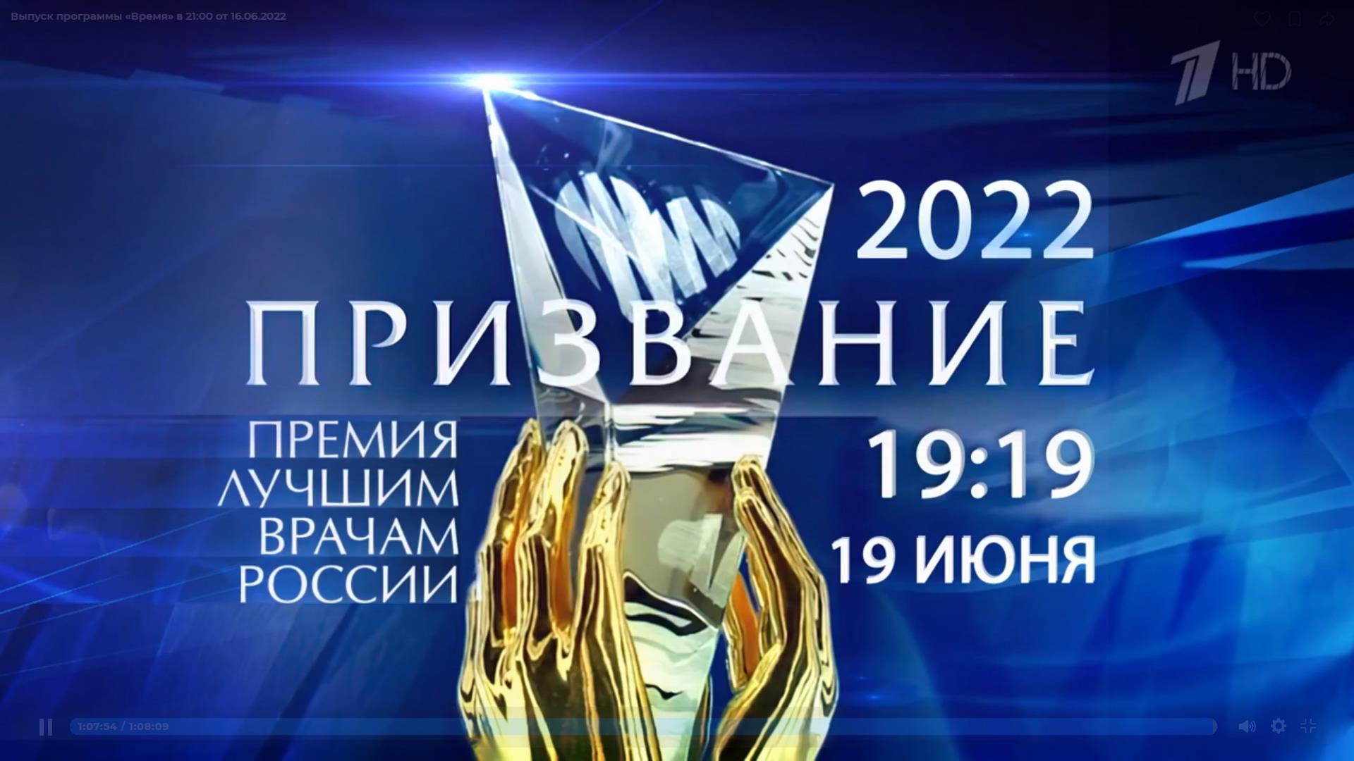 Трансляция 22-й Церемонии награждения Премией лучшим врачам России «Призвание» состоится 19 июня 2022 г. в прямом эфире 1 Канала в 19:19.
