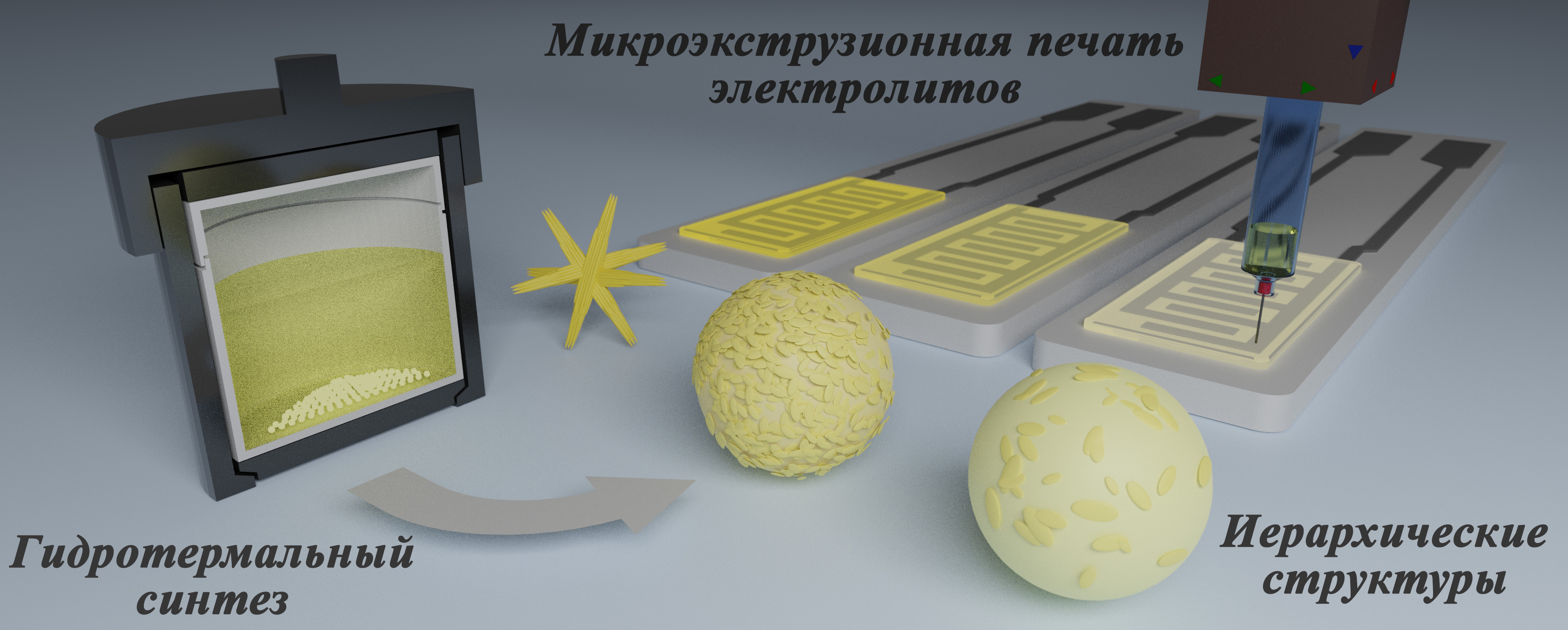 «Нами был применен гидротермальный метод синтеза, при варьировании параметров которого нам удалось получить иерархически организованные наноструктурированные порошки, состоящие из частиц в виде стержней, нанолистов и микросфер, которые далее использовались для создания функциональных чернил, подходящих для микроэкструзионной печати планарных электролитов, – прокомментировала научный сотрудник Лаборатории химии легких элементов и кластеров ИОНХ РАН, кандидат химических наук Татьяна Симоненко, – Полученные таким образом покрытия обладают высокой электропроводностью, что позволяет рассматривать их в качестве перспективных твёрдых электролитов для топливных элементов, функционирующих в интервале 400-600°С. Нам также удалось показать, что микроэкструзионная печать может быть эффективно использована при автоматизированном формировании неорганических планарных твёрдых электролитов различной геометрии, а также имеет перспективы масштабирования при полностью аддитивном формировании ячеек топливных элементов».