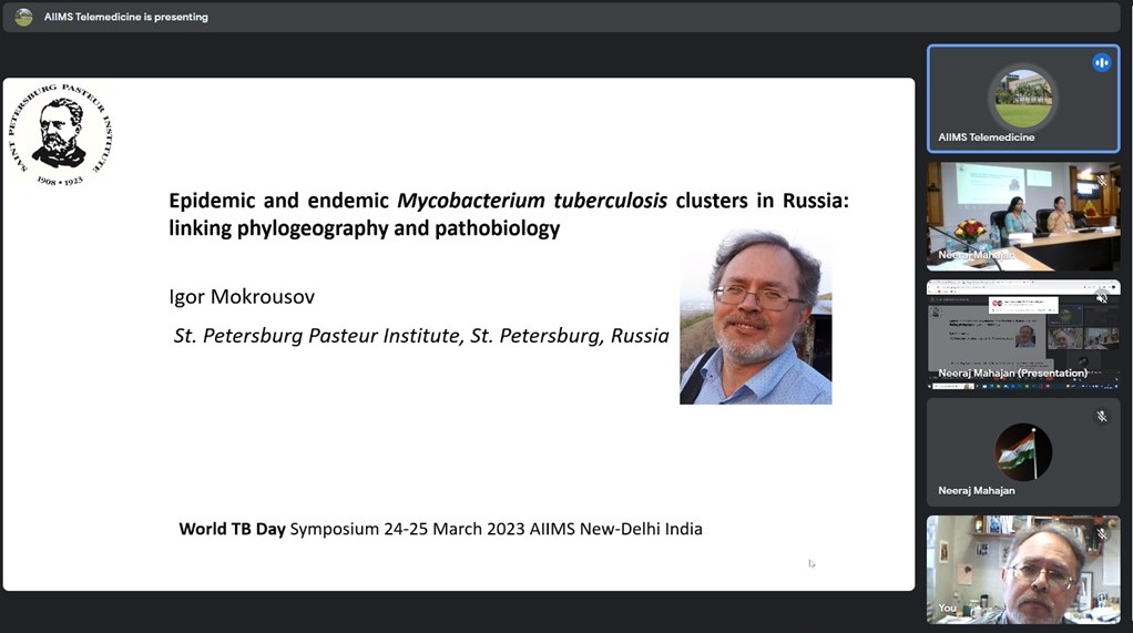 Также в рамках симпозиума выступили зарубежные и индийские ученые. В докладах были в основном рассмотрены практические аспекты клинического туберкулеза и оптимального выбора лечения. С приглашенным докладом по экологии и эволюции Mycobacterium tuberculosis выступил один из ведущих международных экспертов проф. Себастиан Ганьо (Sebastien Gagneux) из Института тропической медицины (Швейцария). Трансляция симпозиума велась на Youtube-канале AIIMS Telemedicine.