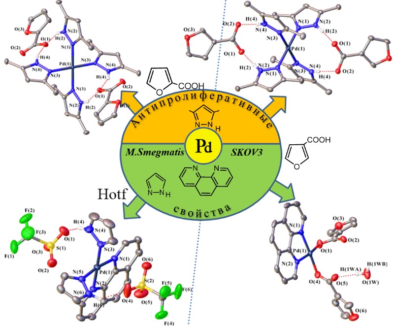В результате работы были получены четыре новых соединения палладия, которые сочетают в себе как противораковые, так и антимикобактериальные свойства, и в то же время обладают низкой токсичностью для здоровых тканей.