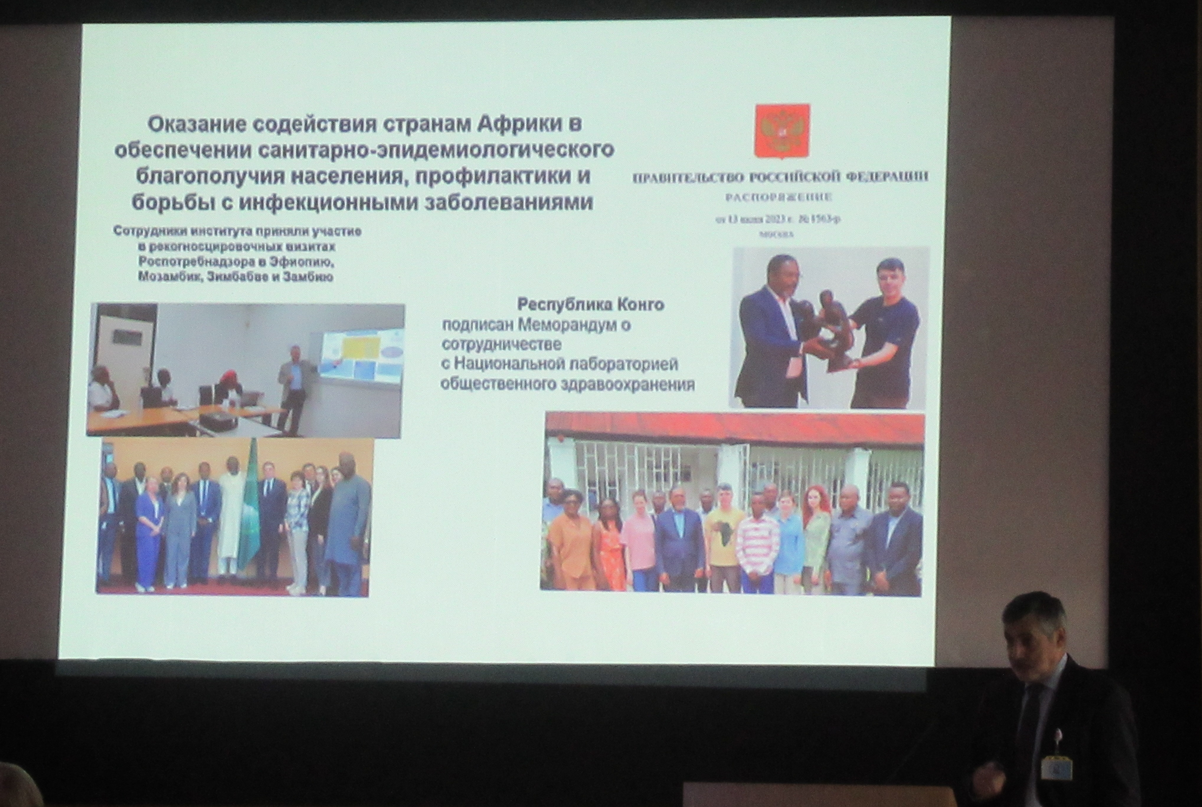 В докладе, в частности, были затронуты темы, касающиеся отраслевой НИР «Научное обеспечение эпидемиологического надзора и санитарной охраны территории Российской Федерации, создание новых технологий, средств и методов контроля и профилактики инфекционных и паразитарных болезней на 2021-2025 гг.», публикационной активности, научной продукции, подготовке научных кадров, подготовке кандидатских и докторских диссертаций, получению патентов и регистрационных удостоверений на препараты, заявкам на изобретения, грантам, международной и медицинской деятельности, кадровому составу, проекту новой площадки Института в Белоострове, новым направлениям развития и планам на 2024 год.