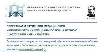 В период с 8 по 15 июля 2024 г. в Санкт-Петербургском НИИ эпидемиологии и микробиологии имени Пастера (ул. Мира, д. 14) пройдет Летняя школа «Наука - врачам будущего», организованная для студентов медицинских и биологических специальностей (предпочтение студентам 4-6 курсов).