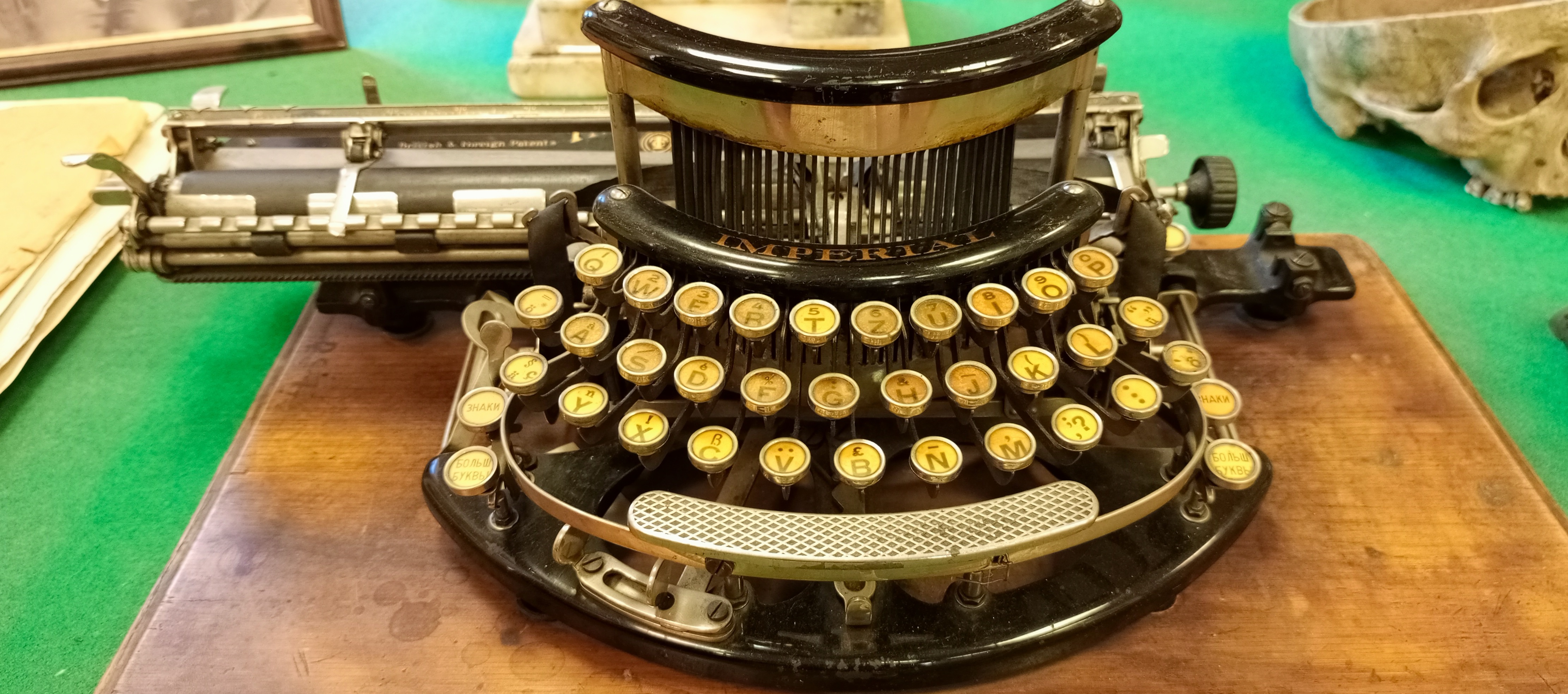 Пишущая машинка фирмы «Империал» входит в состав экспозиции «Реконструкция фрагмента кабинета медицины Клинического Института, ГИДУВа, XX в.». В числе других экспонатов экспозиции: письменный стол и настольная лампа проф. Н.Н. Петрова (основателя отечественной онкологии); череп (учебное пособие) и чернильный прибор, принадлежавшие основателю кафедры нейрохирургии проф. А.Л. Поленову; бюст основателя кафедры урологии проф. Н.А. Михайлова; в шкафах книги из библиотеки Великой княгини Елены Паловны и др.