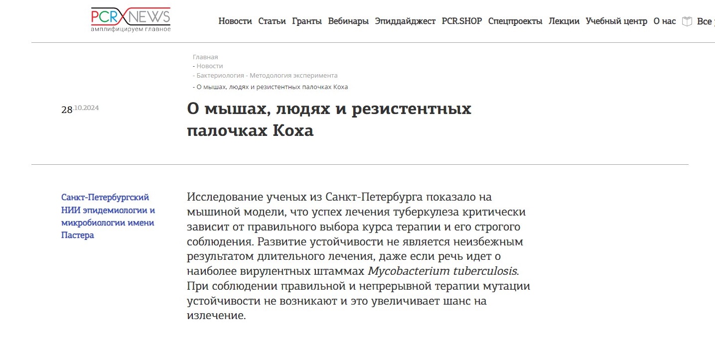 Федеральное бюджетное учреждение науки «Санкт-Петербургский научно-исследовательский институт эпидемиологии и микробиологии им. Пастера» Федеральной службы по надзору в сфере защиты прав потребителей и благополучия человека