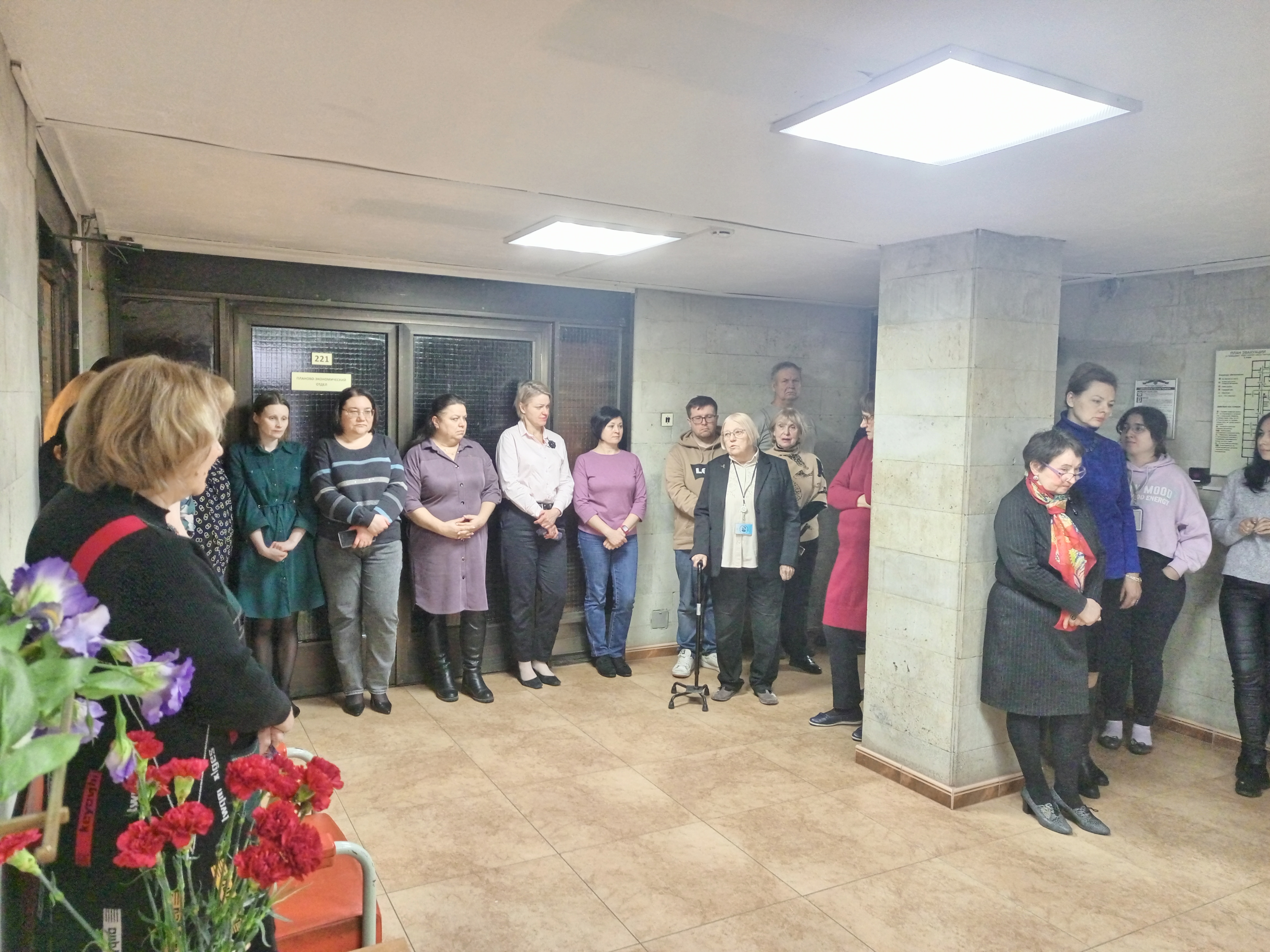 Открыла митинг учёный секретарь Института Галина Фёдоровна Трифонова, рассказавшая о чудовищных планах нацистских оккупантов и о беспримерном мужестве и героизме, проявленными ленинградцами и защитниками города. В их числе – сотрудники Института, не только воевавшие на фронте, но и трудившиеся в блокированном городе и спасавшие население от эпидемий.
