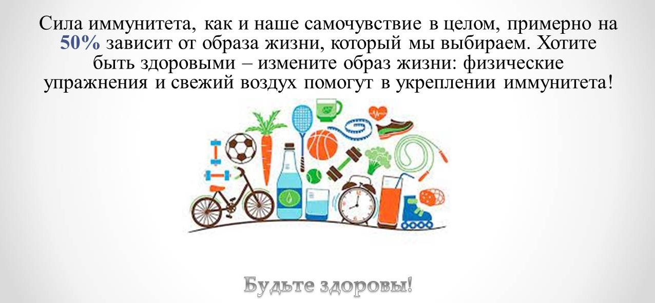 В любом случае своему иммунитету необходимо оказать посильную помощь. Его нужно укреплять постоянно, особенно в сезон зимних морозов и в преддверии весенней слякоти. Чтобы не допустить серьезных расстройств в работе иммунной системы, улучшить своё самочувствие и реже болеть, каждый из нас может выполнять простые рекомендации: вести активный образ жизни и регулярно заниматься спортом; отказаться от вредных привычек; заботиться о своем психическом здоровье; правильно питаться; соблюдать режим сна (не менее 8 часов в сутки).