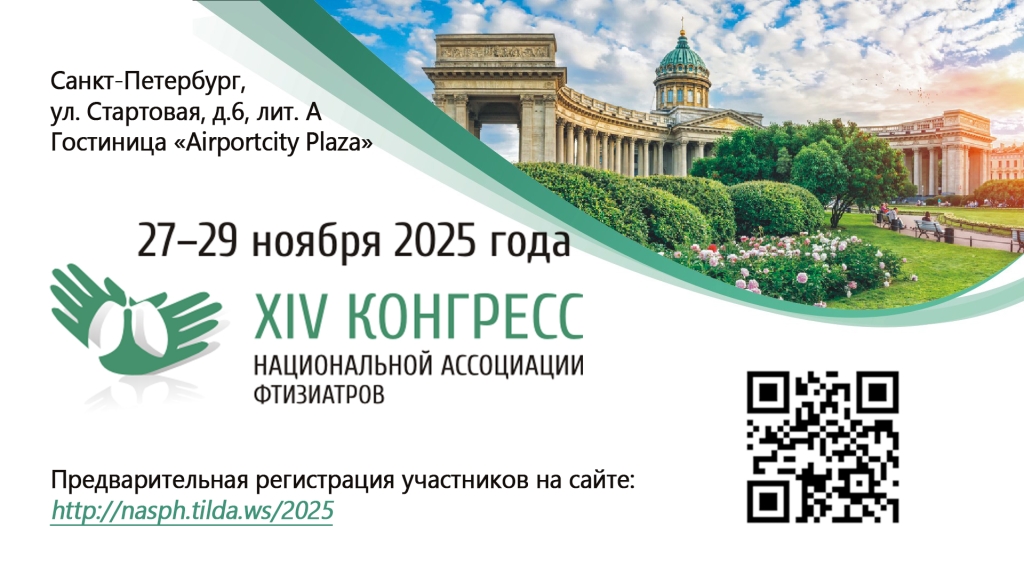 27-29 ноября 2025 г. в Санкт-Петербурге прошёл XIV Конгресс Национальной ассоциации фтизиатров. Основными темами конгресса были: фундаментальные основы патогенеза туберкулеза и биологические характеристики его возбудителей; исследования для перехода к персонализированной фтизиатрии; эпидемиология, профилактика, раннее выявление, дифференциальная диагностика и эффективное лечение туберкулеза; особенности диагностики и лечения туберкулеза у людей с ВИЧ-инфекцией; междисциплинарные взаимодействия фтизиатрии с другими специальностями и другие.