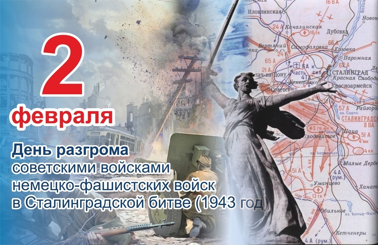 2 февраля 1943 года – День разгрома советскими войсками немецко-фашистских войск в Сталинградской битве.