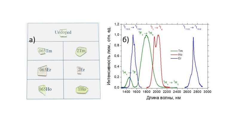 Ученые из России, Франции и Чехии впервые синтезировали и подробно изучили спектрально-люминесцентные свойства системы хлорид свинца – диоксид теллура легированные ионами редкоземельных металлов тулия, эрбия и гольмия (PbCl2-TeO2-ReF3, где Re = Tm, Er, Ho). Исследование прокомментировала заведующая Лабораторией высокочистых веществ ИОНХ РАН, доктор химических наук Мария Николаевна Бреховских: «За счёт грамотного подбора условий синтеза методом закаливания расплава удалось избежать пирогидролиза хлорида свинца и получить стёкла с небольшим содержанием остаточных гидроксильных-групп. Введение галогенидного модификатора (фтор, хлор, бром и йод) позволяет уменьшить энергию фононов матрицы, что важно для люминесценции редкоземельных-ионов в коротковолновом инфракрасном диапазоне спектра. Благодаря низкой энергии фононов эта система особенно подходит для генерации лазерного излучения в диапазоне длин волн 2–3 мкм, широко применяемом в медицине (терапия, хирургия). Предложенные стёкла продемонстрировали исключительные спектрально-люминесцентные характеристики: времена жизни возбуждённых состояний ионов тулия, эрбия и гольмия (Tm3+, Er3+ и Ho3+) существенно больше, чем у аналогичных оксидных и оксофторидных стёкол (например, системы оксидов цинка и натрия с диоксидом теллура (ZnO-Na2O-TeO2), фторида бария с диоксидом теллура (BaF2-TeO2)). Это является преимуществом для потенциального применения в оптических усилителях. Важно отметить, что в этом исследовании люминесценция в диапазоне 2- 3 мкм получена и подробно охарактеризована впервые для стёкол, содержащих хлорид свинца (PbCl2)».
