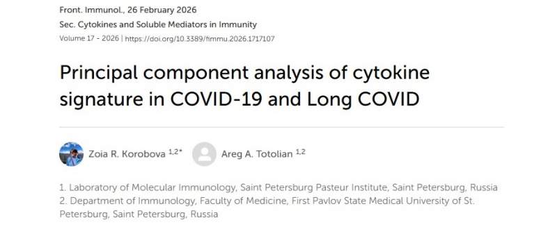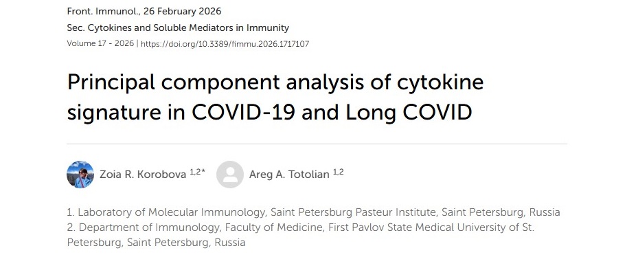 В конце февраля 2026 г. в журнале Frontiers of Immunology вышла статья о медиаторных молекулах иммунной системы – цитокинах, и математическом описании их взаимодействий при COVID-19. Данное исследование за авторством научного сотрудника лаборатории молекулярной иммунологии, к.м.н. Зои Романовны Коробовой и д.м.н., профессора, академика РАН Тотоляна Арега Артемовича, объединило в себе уже накопленные данные о цитокиновом профиле при инфекции, вызванной разными геновариантами SARS-CoV-2, и при постковидном синдроме.